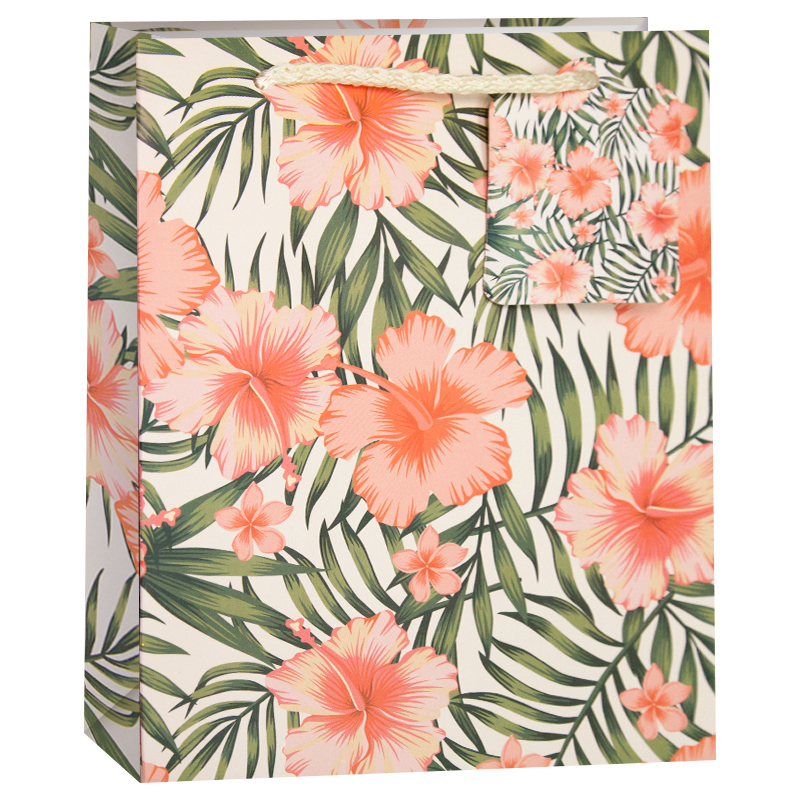 Пакет Цветущие гибискусы и листья 32*26*13см
