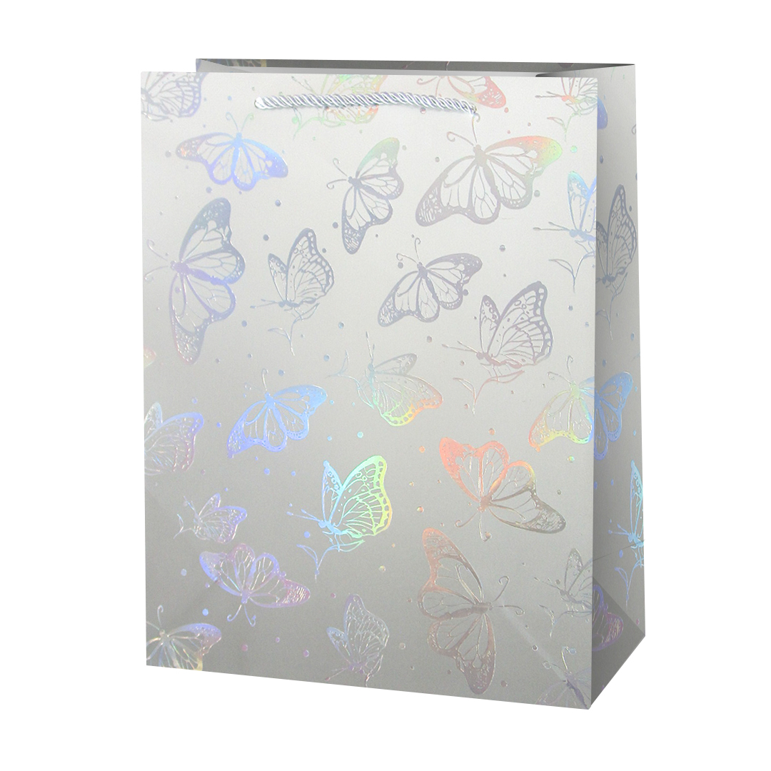 Пакет подарочный Мерцающие бабочки дизайн №1 металлик 32х26х10см