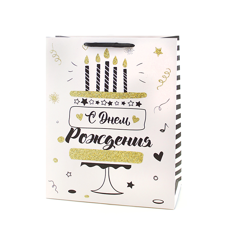 Пакет подарочный С ДР Золотые свечи с глиттером 26*32*12см