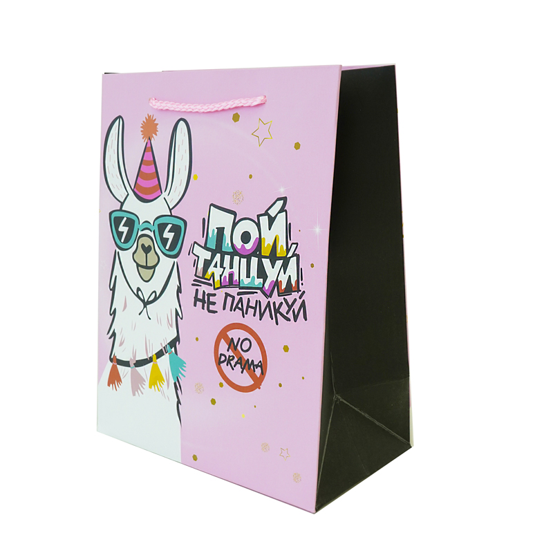 Снаружи пакет покрыт матовой ламинацией, что придает ему прочность, а изображению - яркость и насыщенность.