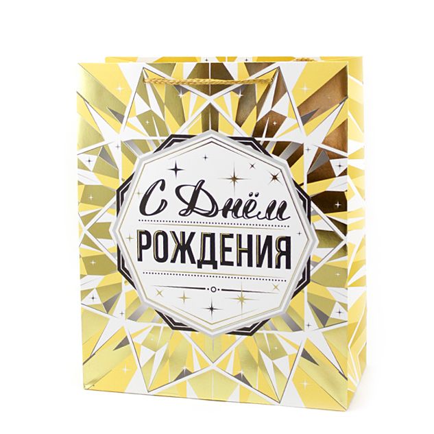 Пакет подарочный "С Днём рождения. Золото" Тиснение фольгой / 26*32*12 см