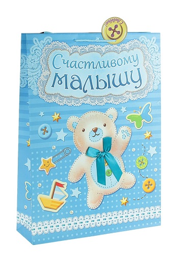 Пакет подарочный с 3D аппликацией Happy Birthday 26*32*10см