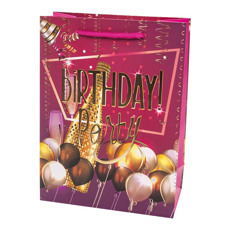 Пакет С Днем Рождения! золотое шампанское 40*31*12 см
