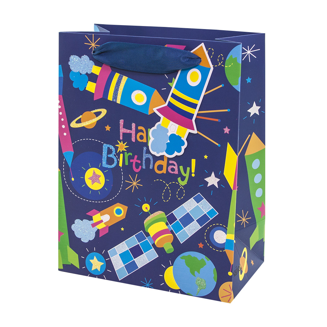 Пакет подарочный, Космос, С Днем Рождения!, Темно-синий 23*18*10 см