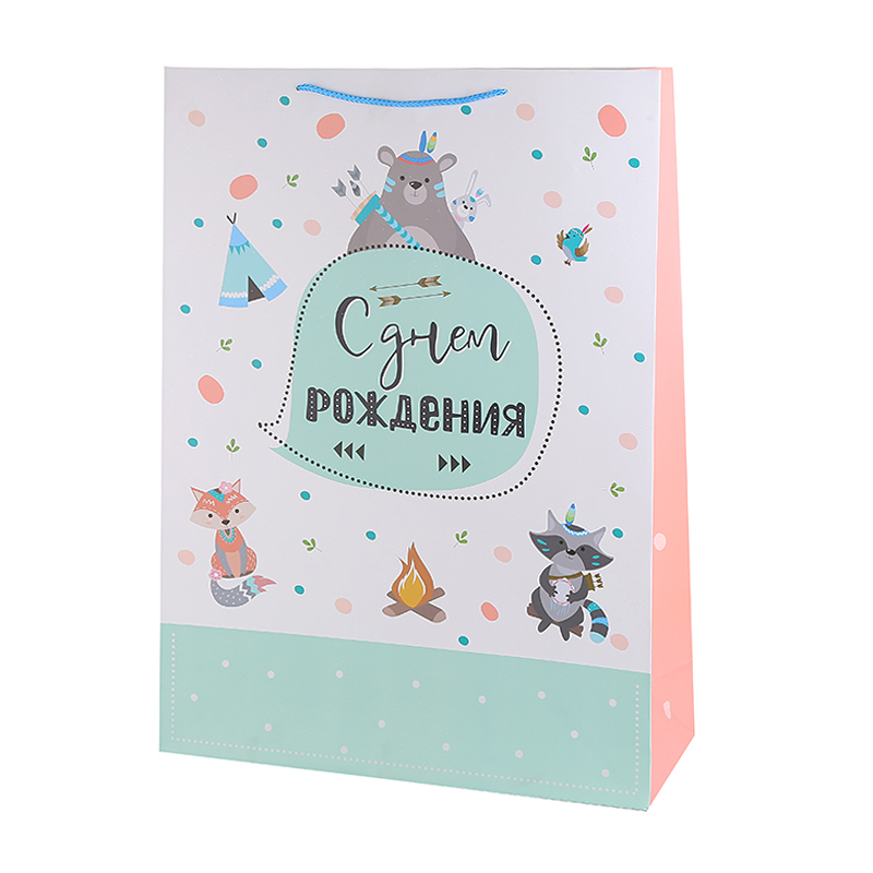 Пакет подарочный "С Днем Рождения. Бохо Зверята" / 50*70*18 см