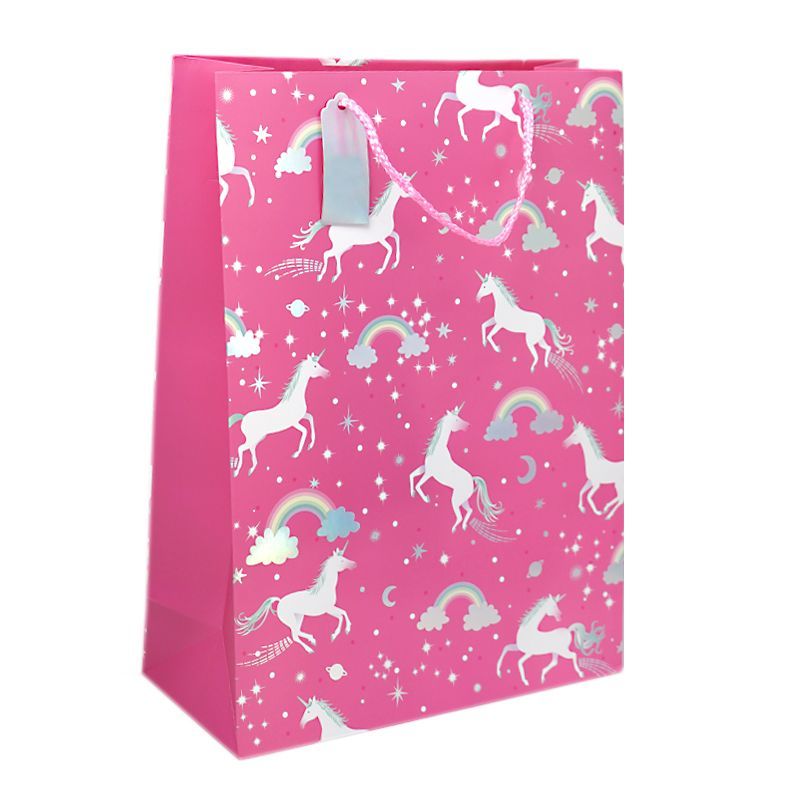 Пакет подарочный "Розовый с единорогами" / 31*42*12 см