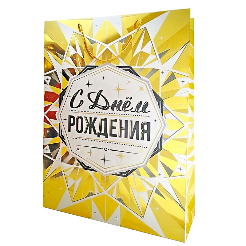 Пакет подарочный "С Днём рождения. Золото" Тиснение фольгой / 50*70*18 см
