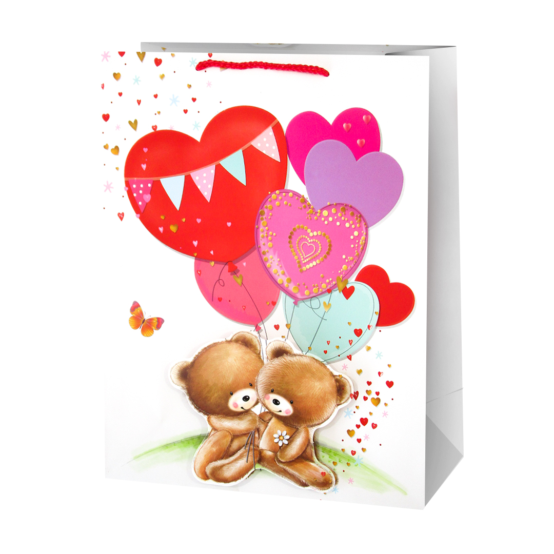 Пакет подарочный 3D, От мишек с любовью, Дизайн №3, с блестками, 42*31*12 см,