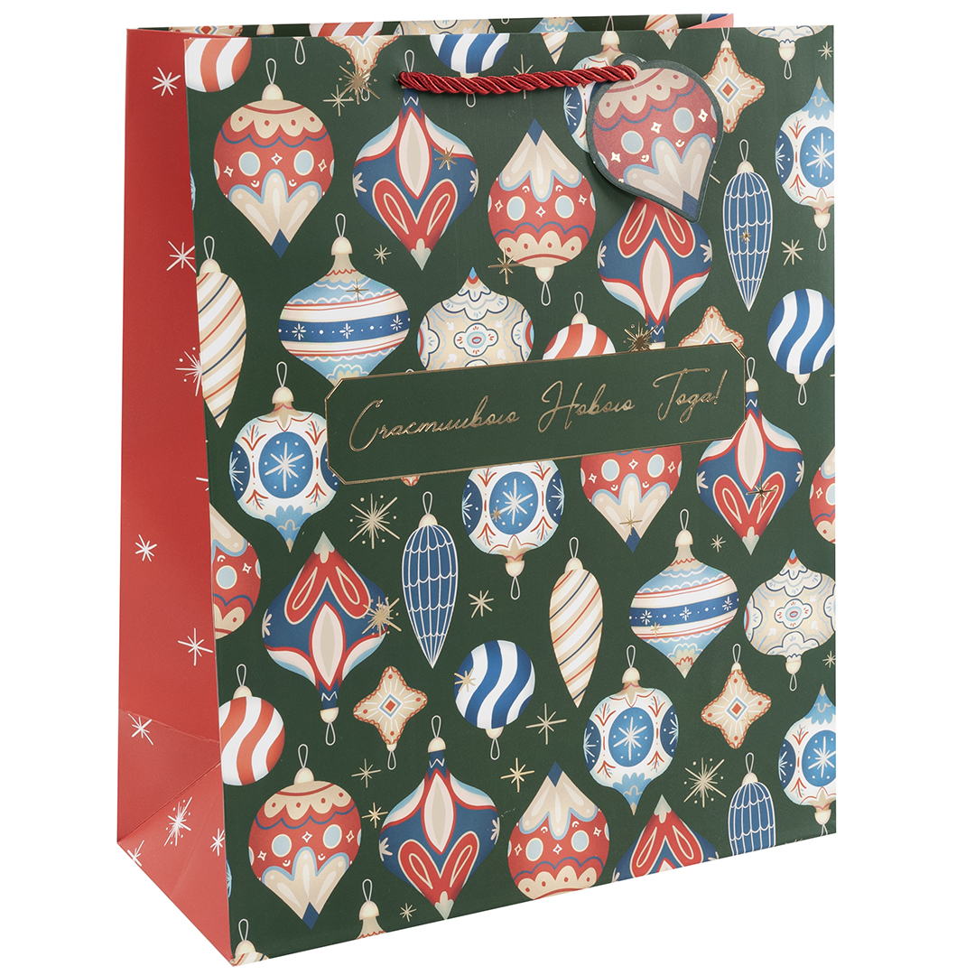 Пакет подарочный Счастливого Нового Года! елочные шары Металлик 55*45*20см