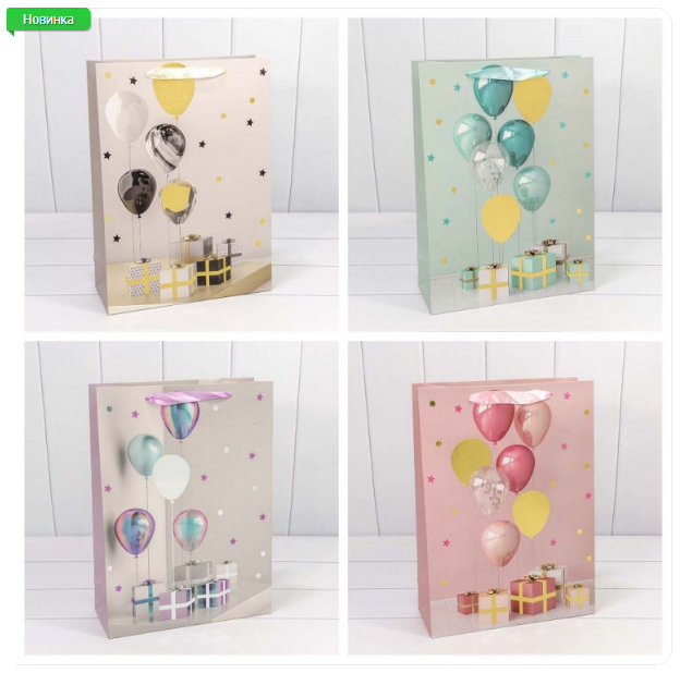 Пакет подарочный с тиснением "Воздушные шарики" 18*23*10