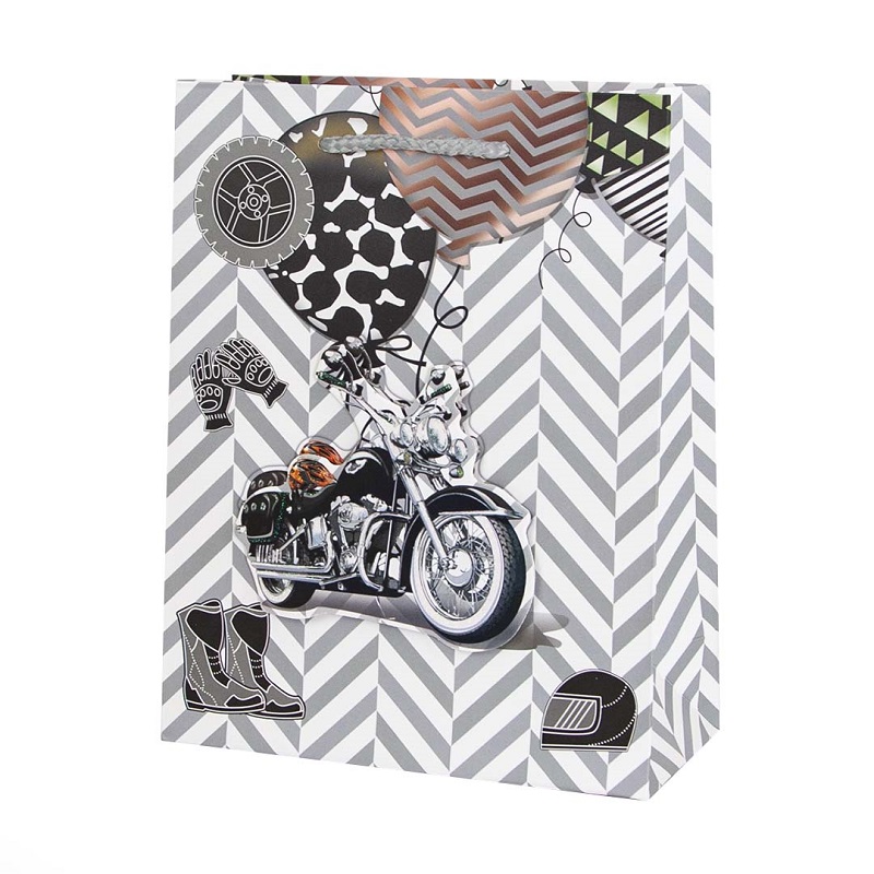 Пакет подарочный 3D, Байкер, с блестками, 23*18*8 см