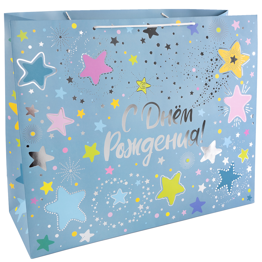 Пакет подарочный С Днем Рождения! яркие звезды 45*55*20см