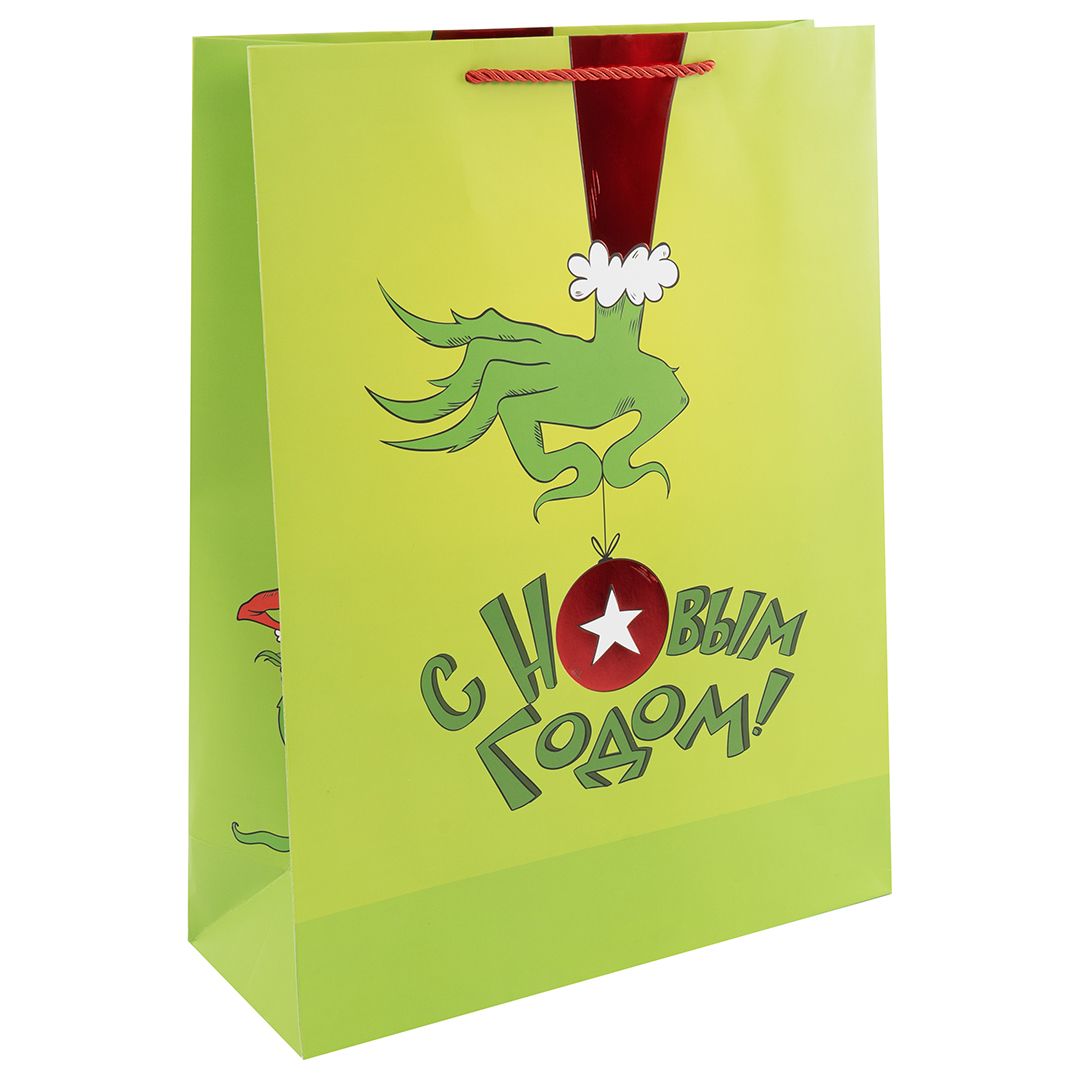 Пакет подарочный С Новым Годом! зеленый монстрик Металлик 70*50*20см