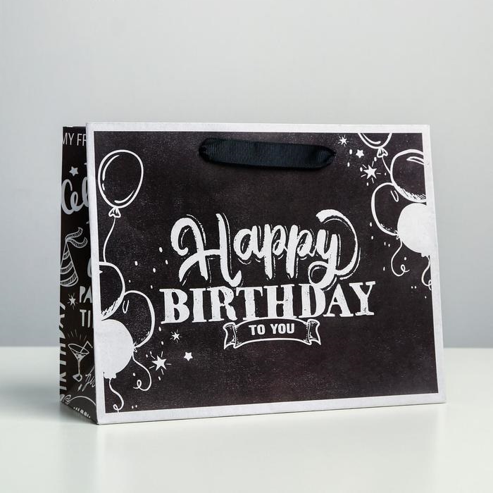 Пакет крафтовый горизонтальный Happy birthday, MS 23 × 18 × 10 см