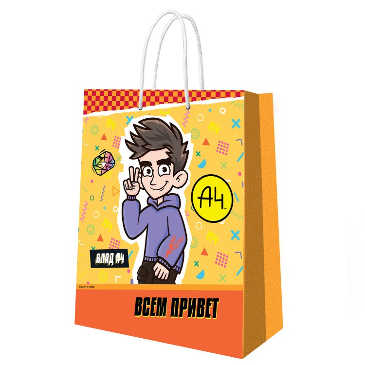 Большой подарочный пакет «ВладА4» сделает ваш подарок ещё более интригующим в глазах ребёнка. А всё потому что на нём изображён на ярко - оранжевом фоне в анимационном варианте любимый видеоблогер Влад А4. Именно красивая подарочная упаковка вызывает те самые эмоции предвкушения и радости у ребёнка.Благодаря большой вместительности пакета - 250/350/100 мм – в него помещаются подарки разных, в том числе, довольно крупных размеров. Пакет прочный, ручки-шнурки удобно ложатся на руку, а стильный дизайн подойдёт для подарков как мальчику, так и девочке. Выдерживает вес до 2.5 кг.